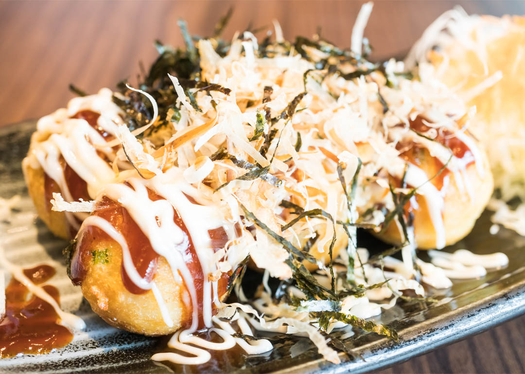 Experience authentic Japanese takoyaki prepared fresh daily — crispy on the outside, creamy on the inside, and topped with our signature Pirate sauce & dancing bonito flakes.