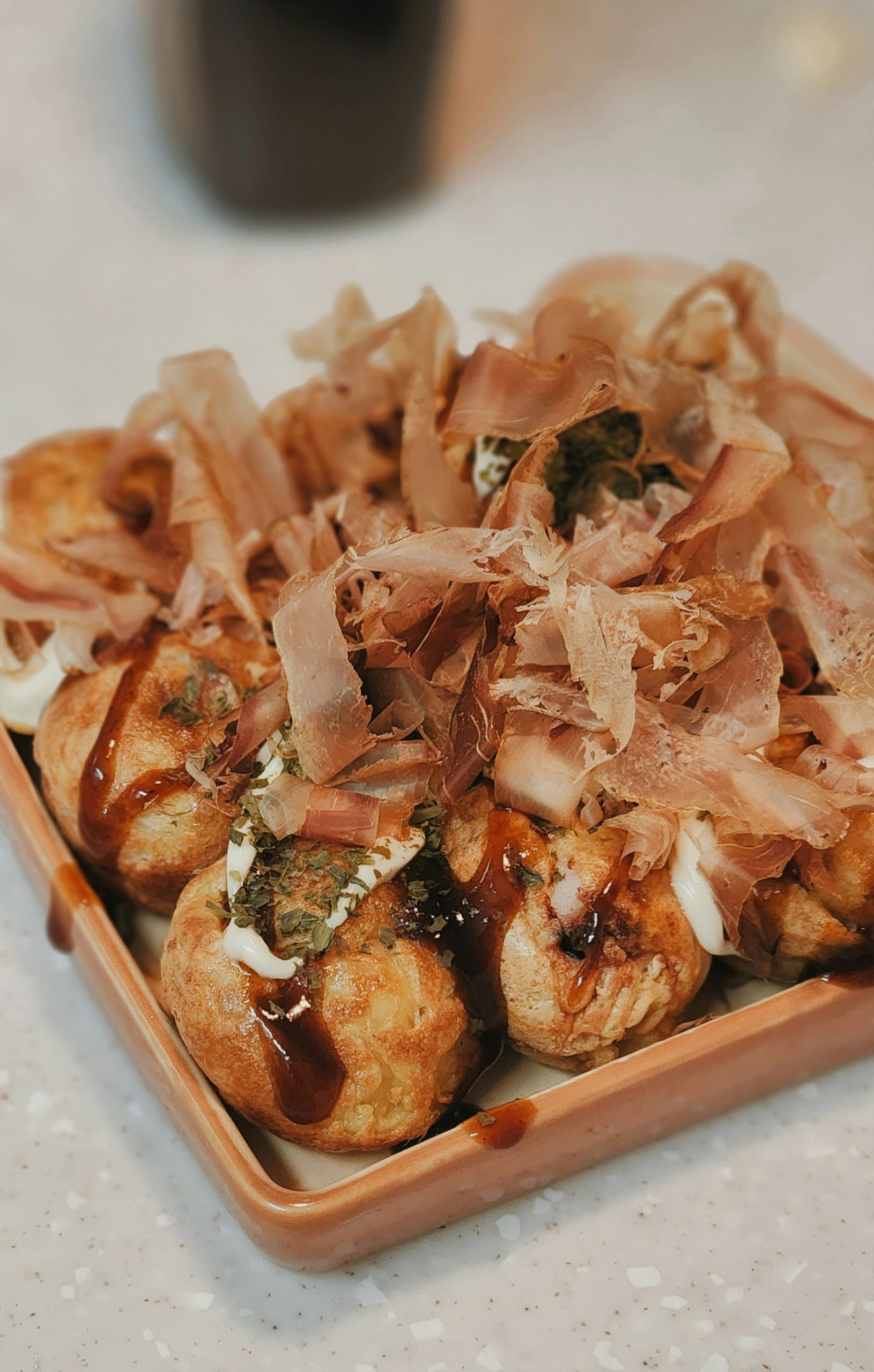Experience authentic Japanese takoyaki prepared fresh daily — crispy on the outside, creamy on the inside, and topped with our signature Pirate sauce & dancing bonito flakes.